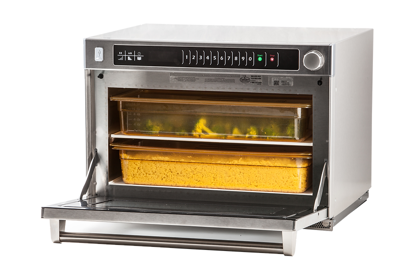 The Amana AMSO heavy-duty commercial steamer microwaves give you consistent results fast. Utilizing high wattage cooking, these units use the moisture in your food to create steam and retain the colors and textures you want. Plus, you'll enjoy cooking speeds up to 4x faster than conventional steamers. Pushing out 3500 watts, the AMSO35 is great for steaming large quantities of vegetables, shrimp, rice, and even liquid eggs. Its 1.6 cubic foot cavity comfortable holds two full-size 4" steam pans to help you prepare in bulk.