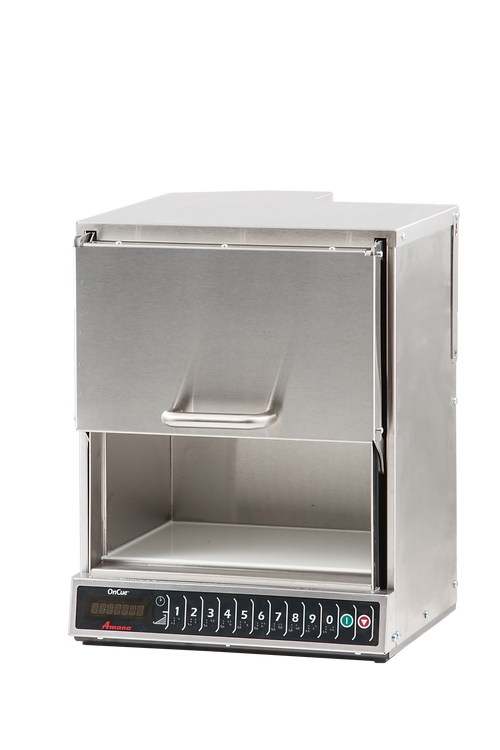The Amana AOC24 heavy-duty 2400W commercial microwave is unlike any microwave you've ever used! With it's unique vertical swing door and lightening fast cook times, up to 42% faster than competitive models, your kitchen will never be the same again. Great for quick service restaurants, snack stands, campus dining, and other casual eating environments, this Amana microwave is capable of warming buns, melting cheese on burgers, and heating sandwiches in mere seconds. Using dual top and bottom magnetrons, it provides even heating for consistently excellent results. This heavy-duty microwave is also designed to be user-friendly. With the 10 control buttons which are marked with both printing and braille, you'll be able to program up to 100 different menu items - taking the guesswork out of the process.