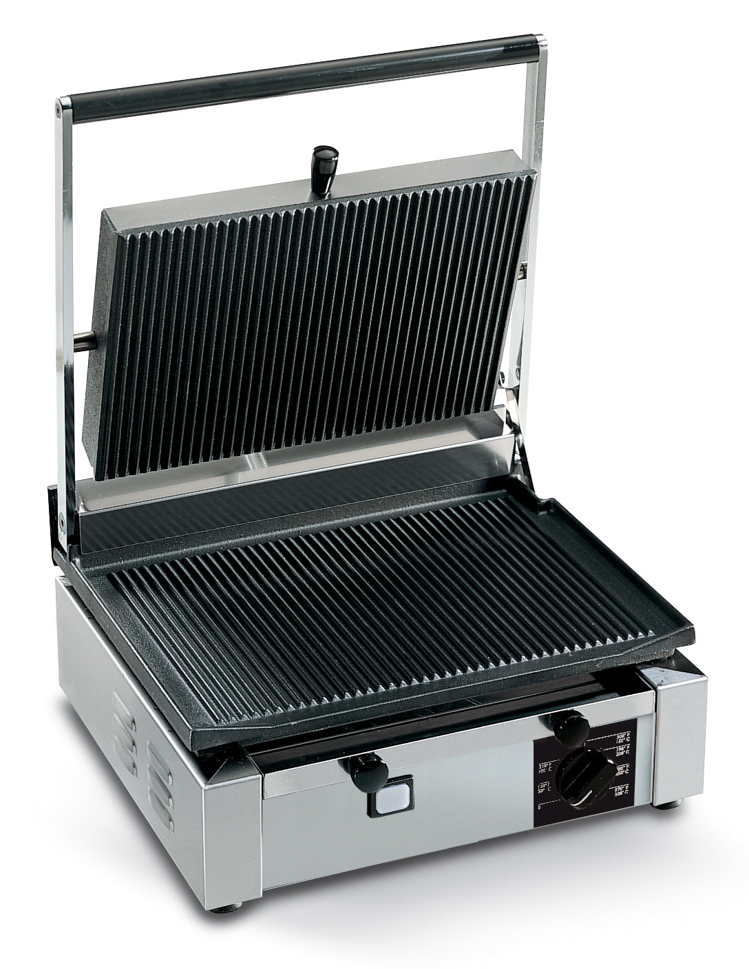 Eurodib Panini grills are commercially built for the demands of restaurants and cafes. Heavy duty in construction, through the use of stainless steel and machined finished cast iron cooking plates.