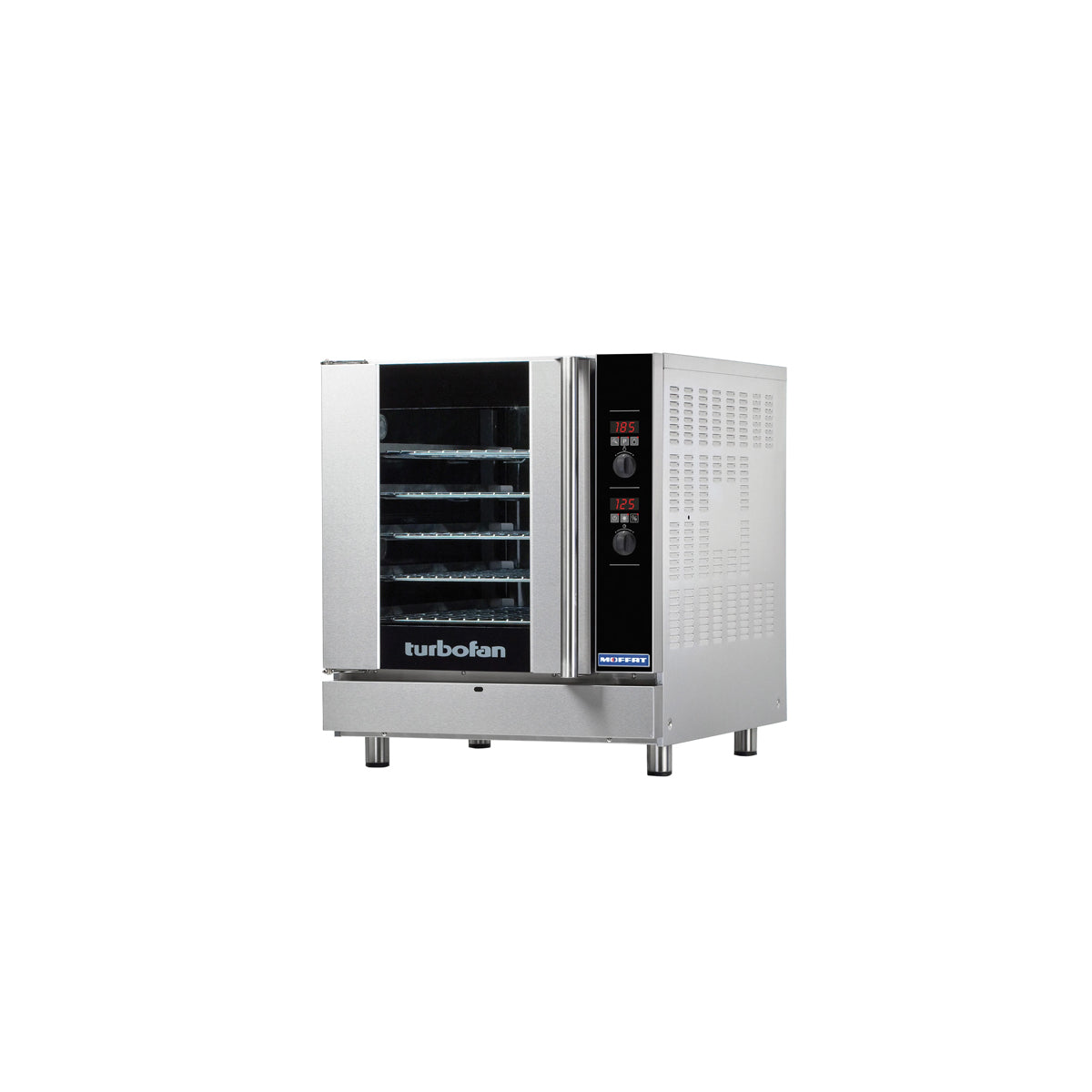 The Blue Seal E32D5 Digital Electric Convection Oven is the ideal step up when looking for a larger half sheet size oven. Compact 24" / 610mm width with a two speed bi-directional reversing fan system. Electronic controls with digital time and temperature display allows you to use the manual or program modes to create the optimum results.