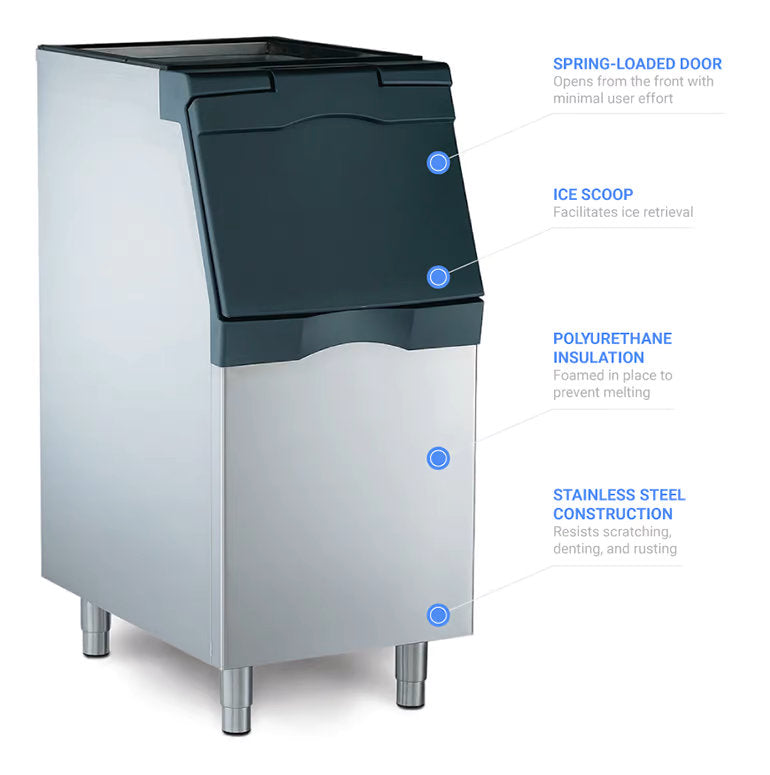 A perfect match to the 22" Prodigy cube ice machines and other Scotsman 22" ice machines (both sold separately), this bin is designed to fit perfectly on top. With the help of this bin, you can make sure there is always ice on hand to meet the needs that arise in your establishment.