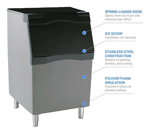 - Bin can accommodate up to 536 lbs. of ice at a time