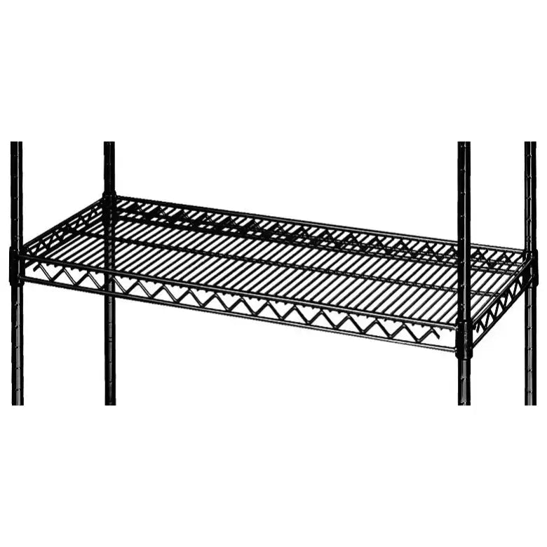 The Focus FF1824 wire shelf has shelf ribs that help users slide supplies on and off. Durability is provided with an epoxy coat, and its wire construction promotes uniform airflow. To hold tall and small supplies, the shelf can be adjusted in 1-inch increments along shelving unit posts. This shelf is intended for dry use only, and it holds as much as 800 pounds. It measures 24 inches wide by 18 inches deep.
