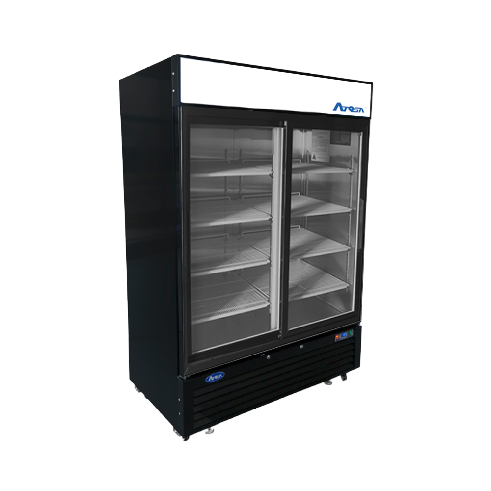 Atosa MCF8727GR Black Cabinet Double Sliding Glass Door Refrigerator Merchandiser