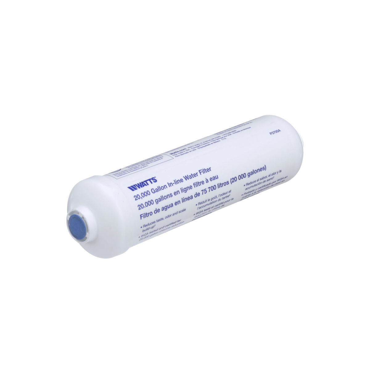 This Watts filter has a rating of 20,000-Gal inline carbon filter and necessary fittings for easy install. Watts In-Line Water Filter Kit is designed to reduce chlorine and odors from water to improve taste. Ideal for refrigerators, ice makers, under sink filters and beverage dispensers.